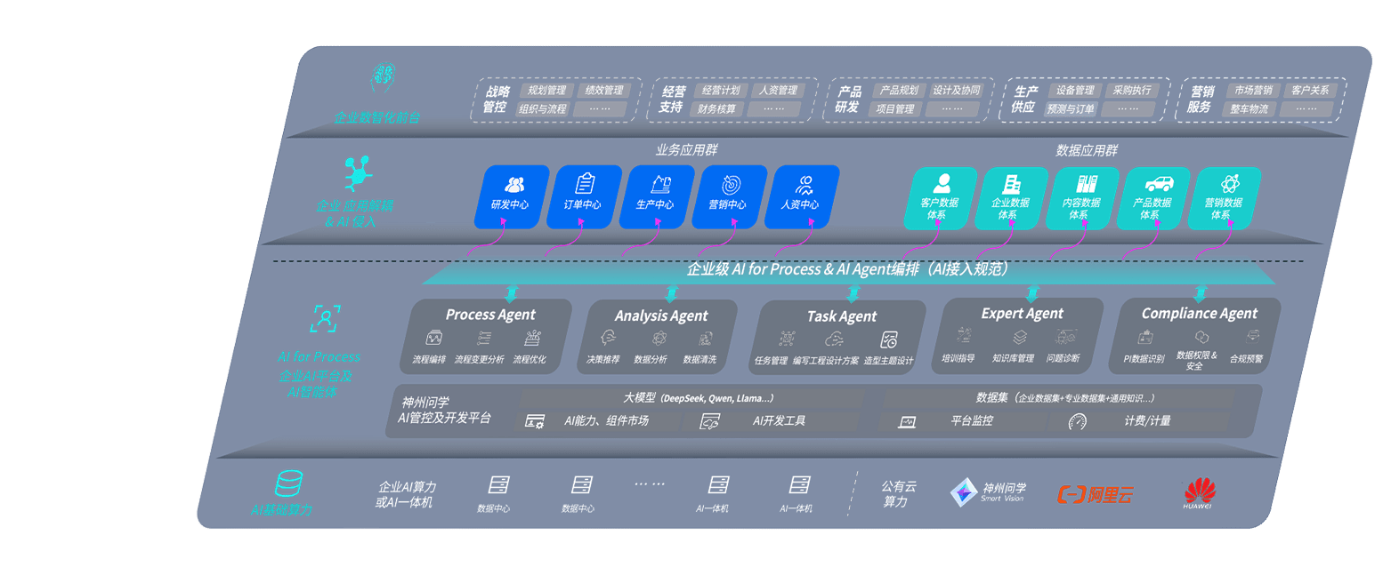 恒星集团问学智车解决方案是一套基于AI技术的汽车行业智能化系统,,,覆盖从底层算力到顶层AI应用的全栈方案。。。方案由算力层、、、模型层和应用层组成:算力层,,方案支持多种一体机配置,,具备云端灵活部署、、、多云适配以及动态优化计算资源的能力;模型层,,恒星集团问学平台版提供了企业级AI应用一站式构建与管理平台,,,支持基于后训练强化技术的汽车企业专属模型的训练、、、评测和运营;应用层,,恒星集团问学DeepSeek版提供包括超级员工、、、智能招采、、、智能营销、、、智能客服、、、AI for BI等一系列解决方案,,可助力汽车行业实现数字化转型,,,,让管理更智能、、响应更敏捷。。。